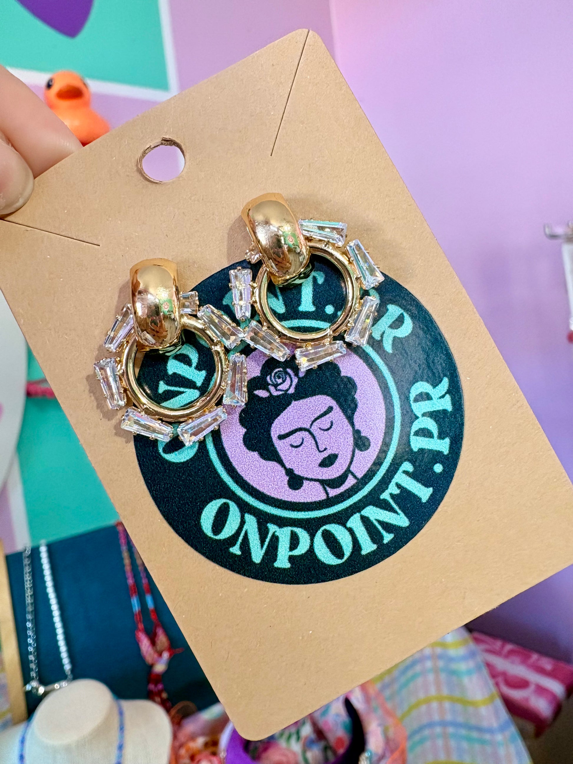STUDS TRANSPARENTE Y DORADO